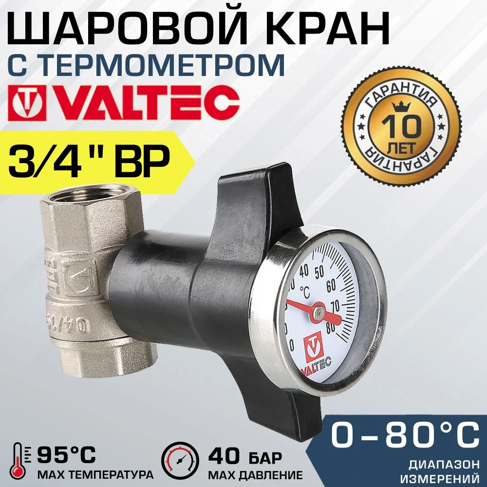 —Кран шаровой c термометром VALTEC, 3/4"