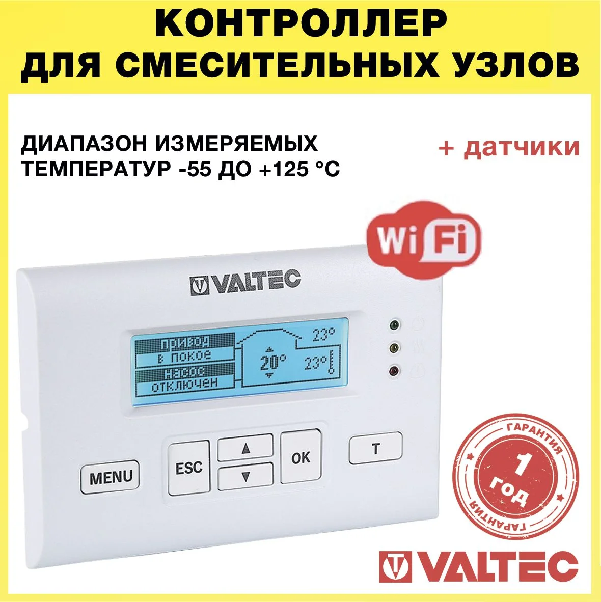 —Контроллер теплого пола VALTEC с Wi-Fi и 3-мя датчиками температуры (теплоносителя и воздуха) 24В / Блок управления смесительного узла, клапанов